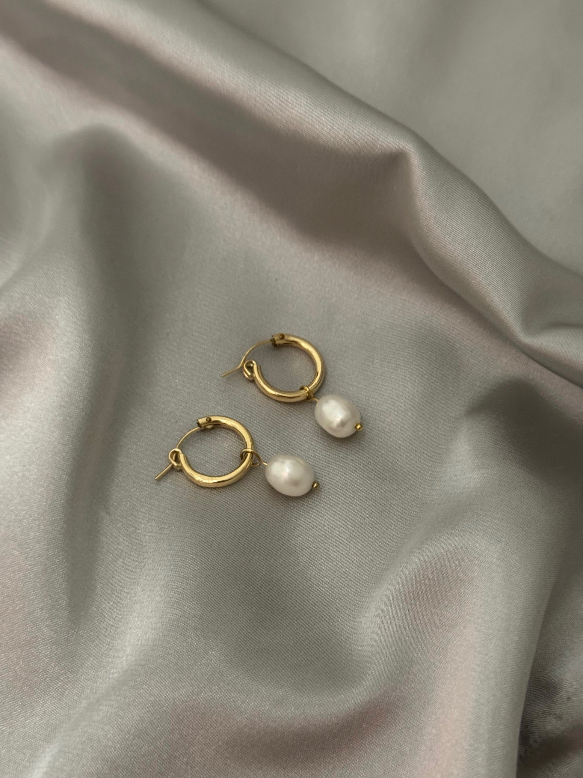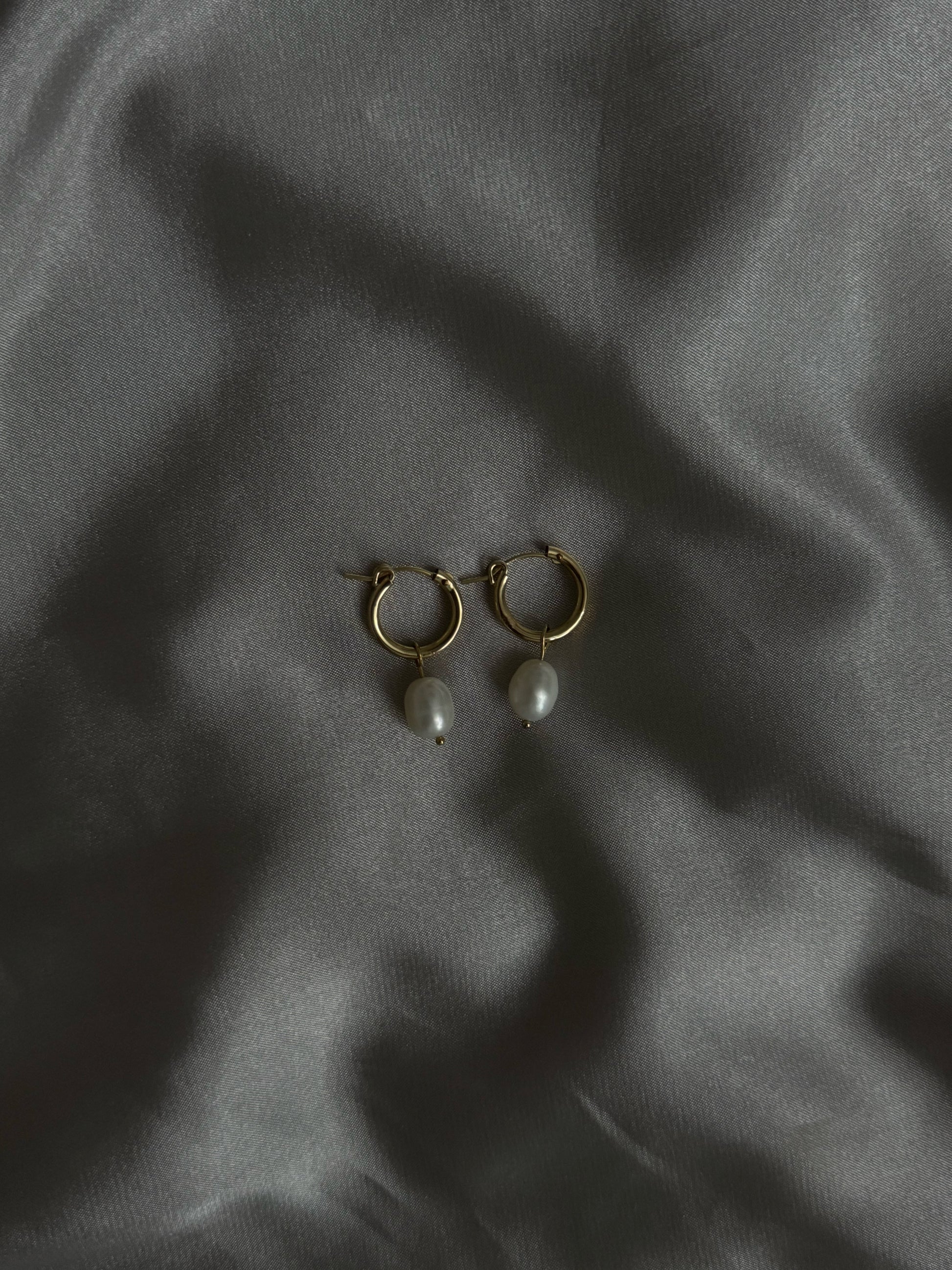Luminous real pearls delicately set along golden (GF) hoops, creating a timeless balance of simplicity and elegance. Their warm golden glow and timeless silhouette make them the perfect blend of everyday ease and understated luxury.